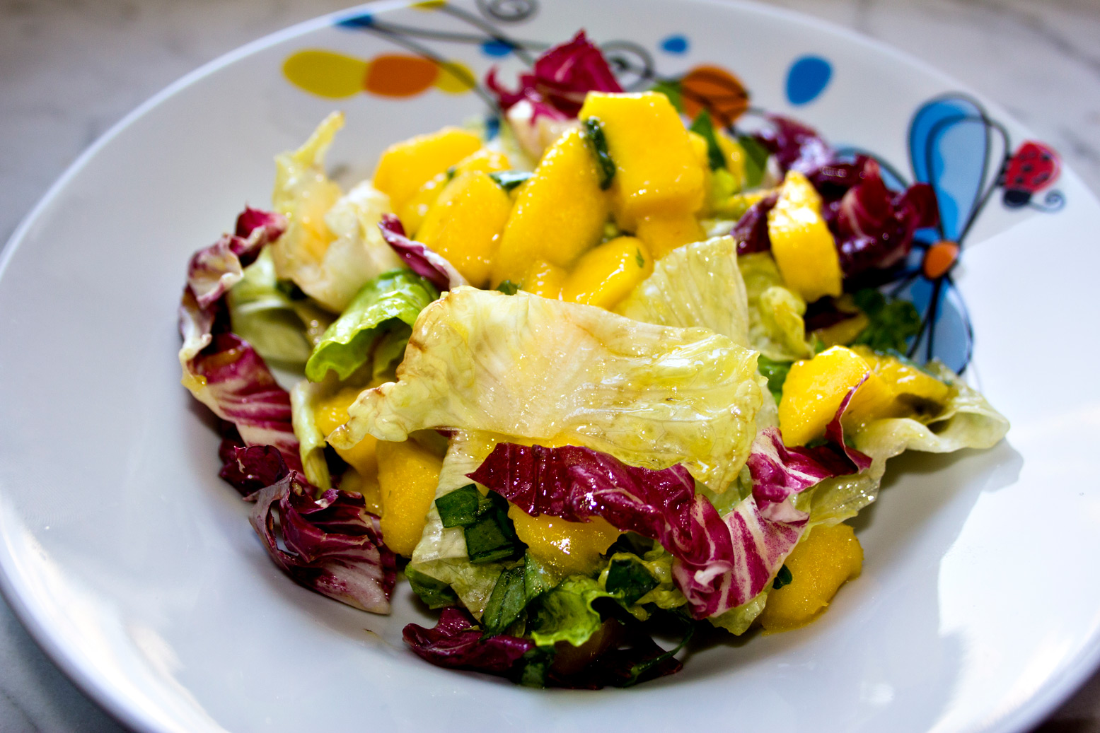 Sommer-Salat mit marinierter Mango und Basilikum