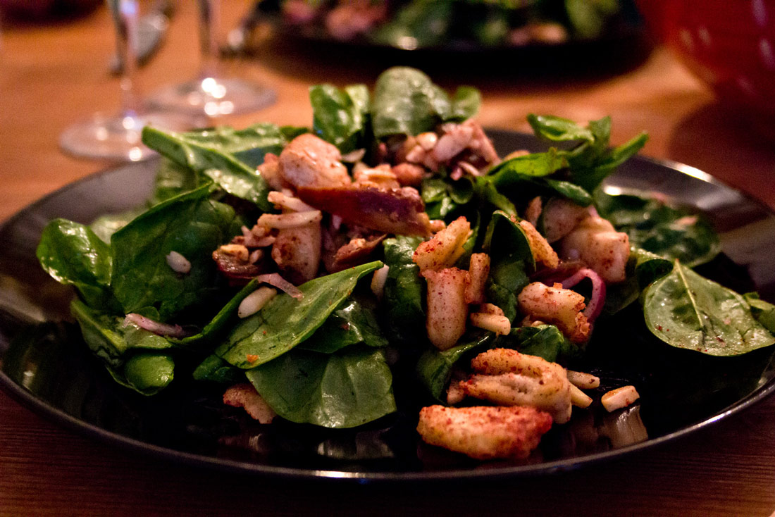 Ein köstlicher Spinat-Salat, der mit orientalischen Aromen und Gewürzen wie Datteln, Sumach, Pinienkernen und Mandeln angereichert ist. Das Rezept ist eine Abwandlung von Yotam Ottolenghi.
